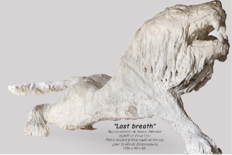 Une œuvre destinée à être coulée en bronze. Entre effondrement et combat une représentation de Mandela appelé le vieux lion